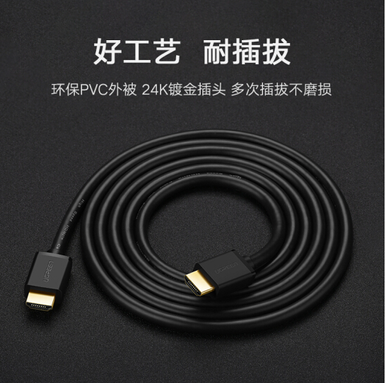绿联(UGREEN)HDMI线工程级 数字高清线 25米 3D视频线 笔记本电脑机顶盒连接电视显示器 黑色工程款-圆线 30米