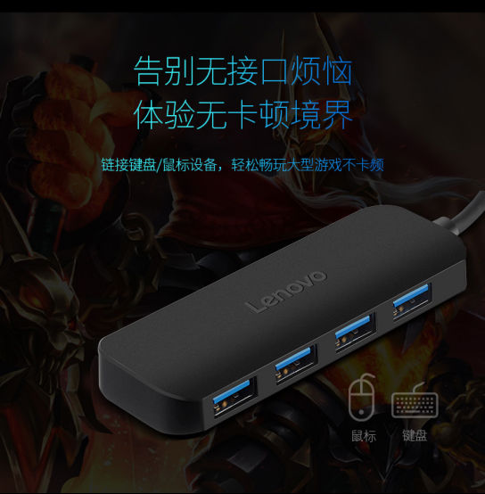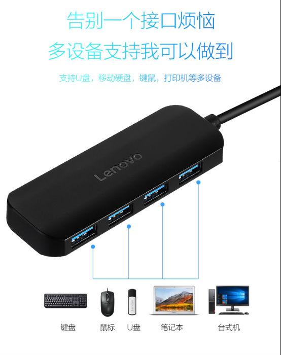 联想 A601 USB分线器 集线器 笔记本 台式机电脑 拓展坞 高速4口HUB 多接口扩展转换器 笔记本电脑 一拖四 集线器延长线 USB3.0 分线器
