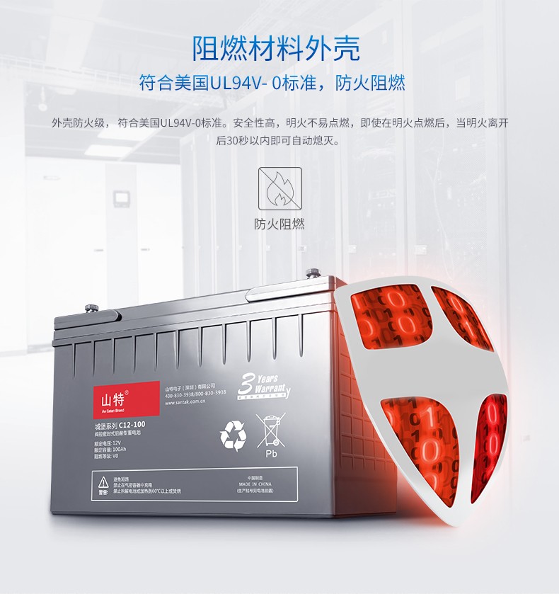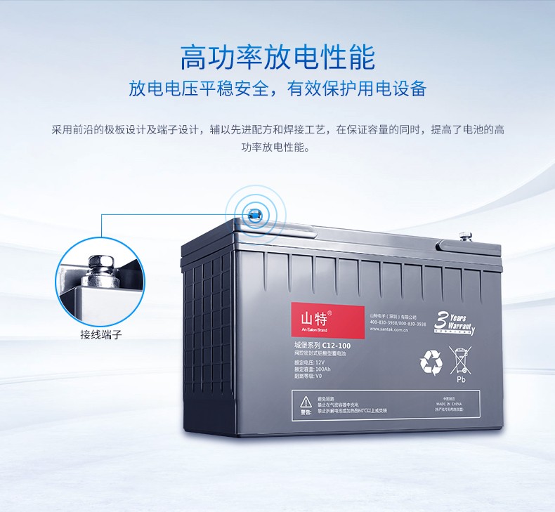 山特 UPS蓄电池 C12-100 灰色 12V 100AH铅酸蓄电池免维护