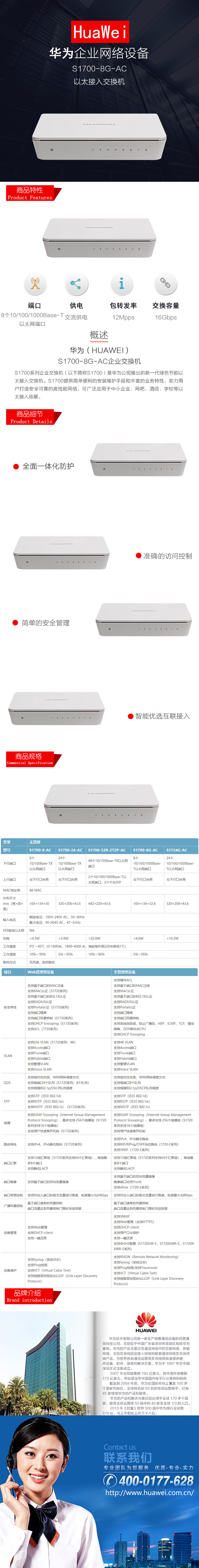 华为 S1700-8G-AC 非网管8口千兆以太网 交换机