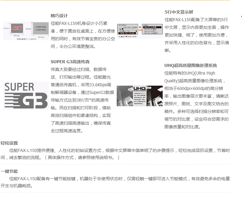 佳能(Canon)FAX-L150 黑白激光多功能传真一体机 (含上门安装调试服务)