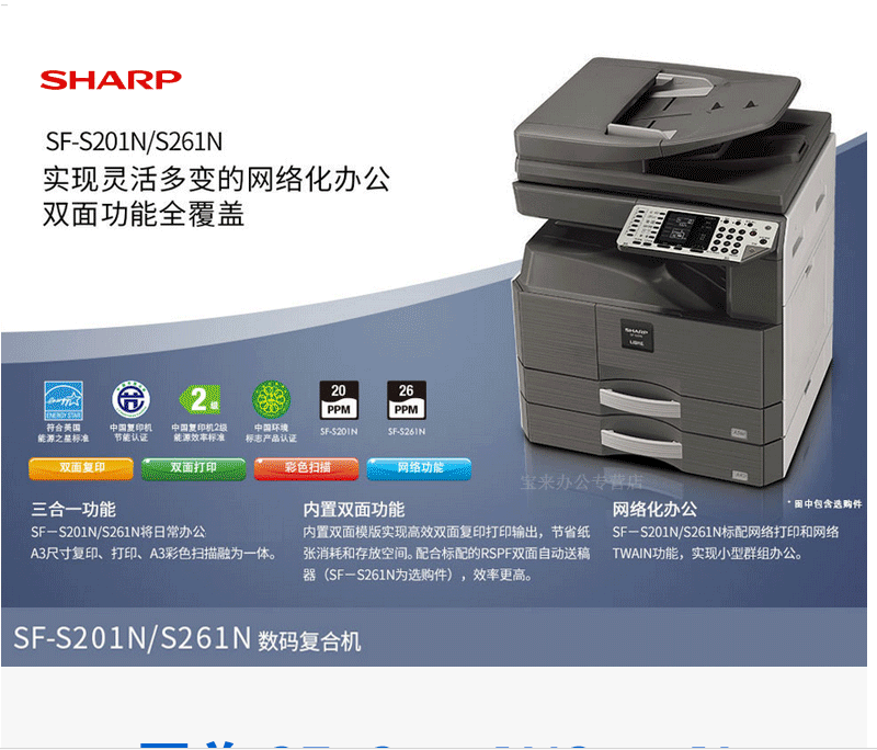 SHARP夏普SF-S201N 复印机(双面自动输稿+网络打印+双纸盒+工作台)(含上门安装调试服务)