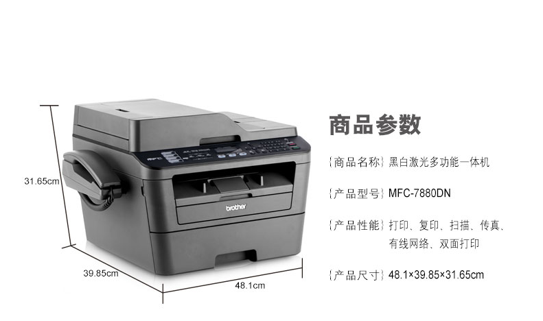兄弟/BROTHER MFC-7880DN 黑白激光多功能一体机 (含上门安装调试服务)